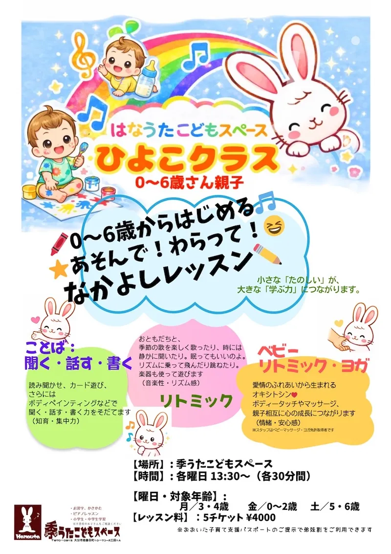 季うたこどもスペースでは、随時体験教室を実施しております!お習字、ピアノどちらも、どちらでもぜひご体験ください。
