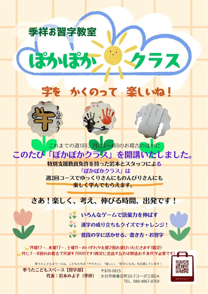 大分市の習字教室【季うた(はなうた)こどもスペース】では、